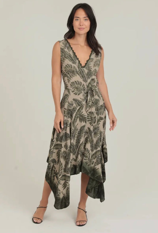 V-Neck Dip Dye Hanky Hem Maxi Dress