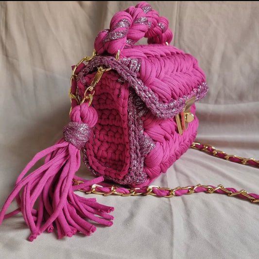 Hot Pink Handmade Chunky Yarn Crossbody