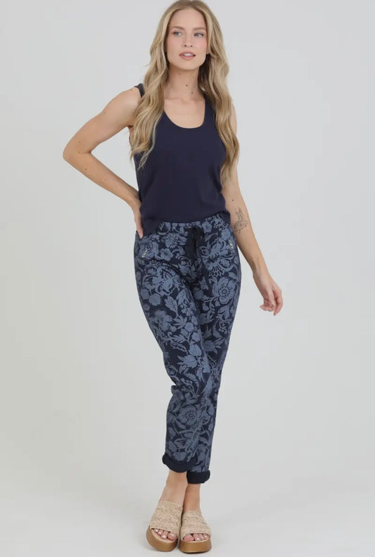 Floral V-Neck w/ Lace Trim Sleeveless Top