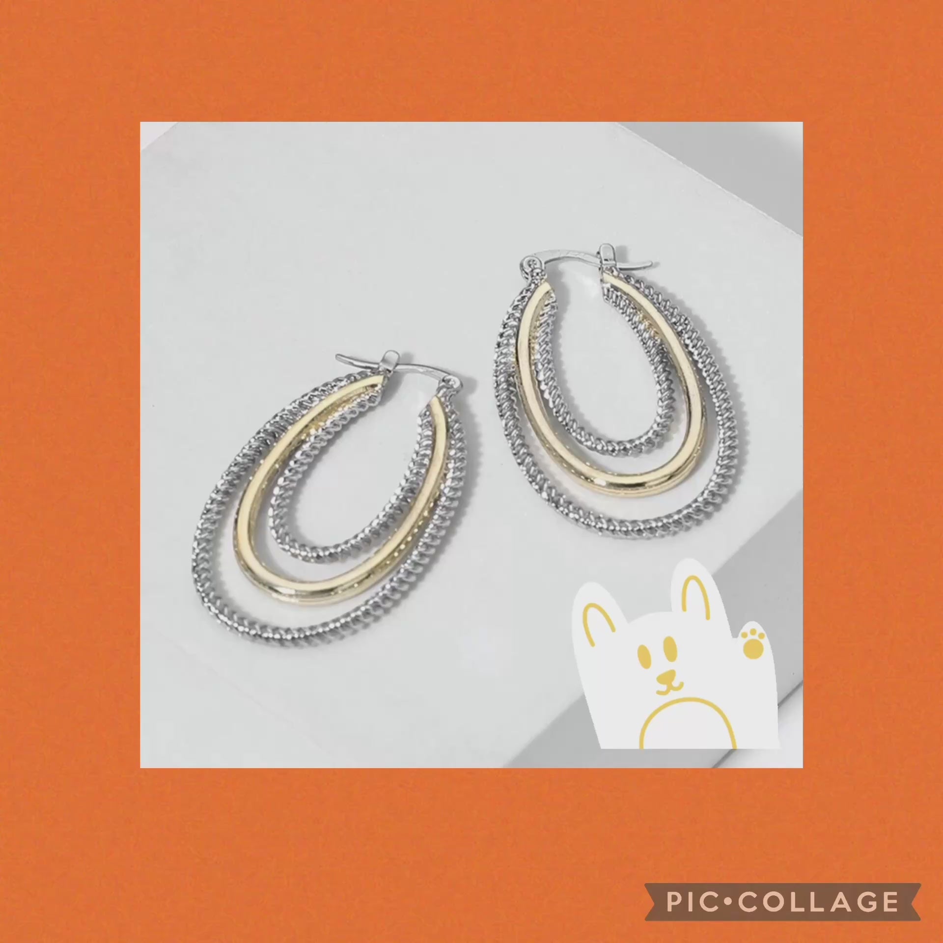 Elevate your elegance with these two-toned oval hoop earrings, expertly plated in shimmering gold and silver. Their refined sparkle and harmonious blend of metals make them a timeless accessory, perfect for sophisticated occasions or adding a polished touch to your everyday ensemble.